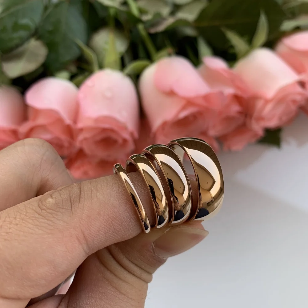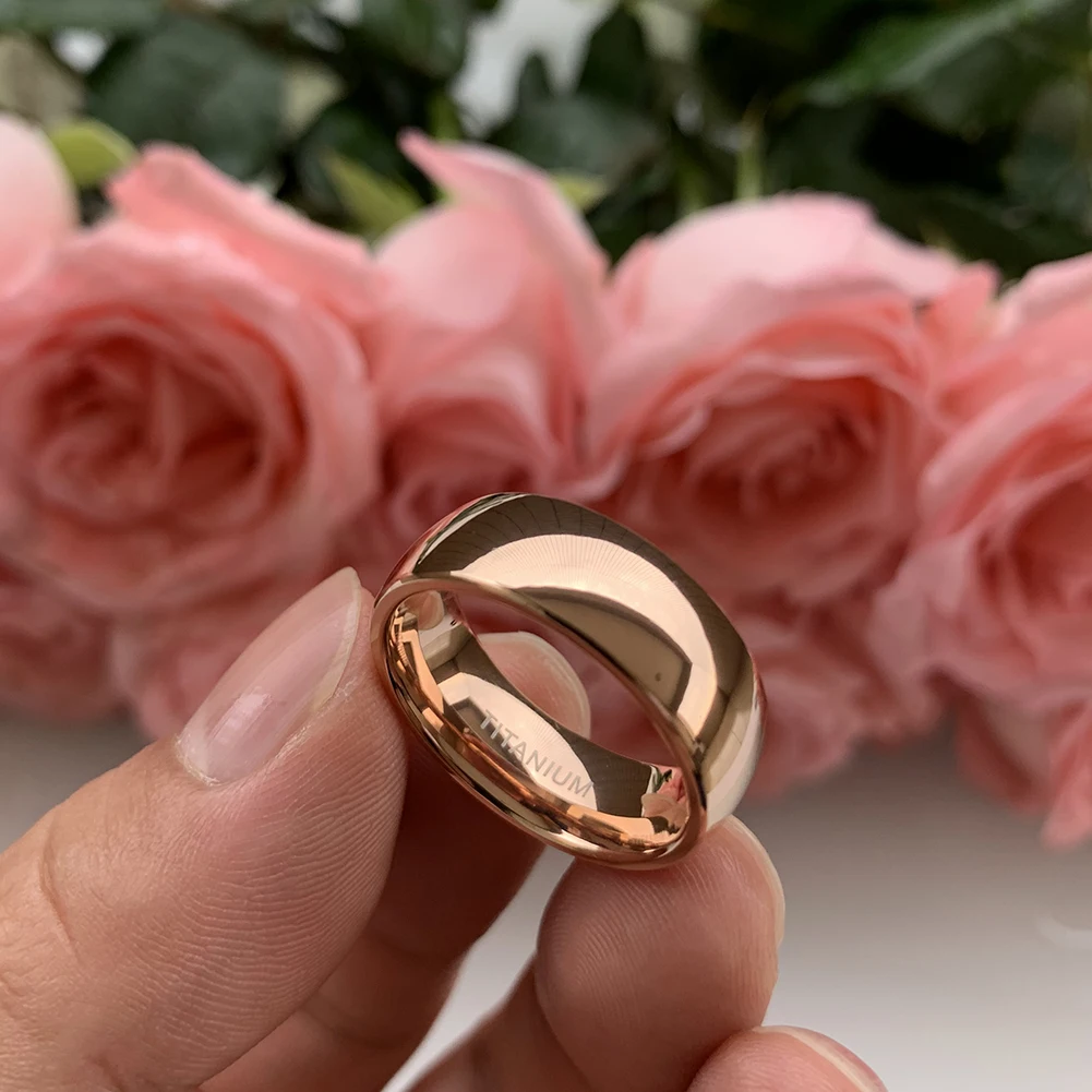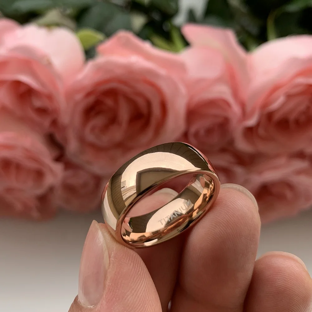 Coolstyle Jewelry Domed Polished 8mm Wholesale Rose Gold Plated Titanium Ring for Men Women Fashion Engagement Wedding Band